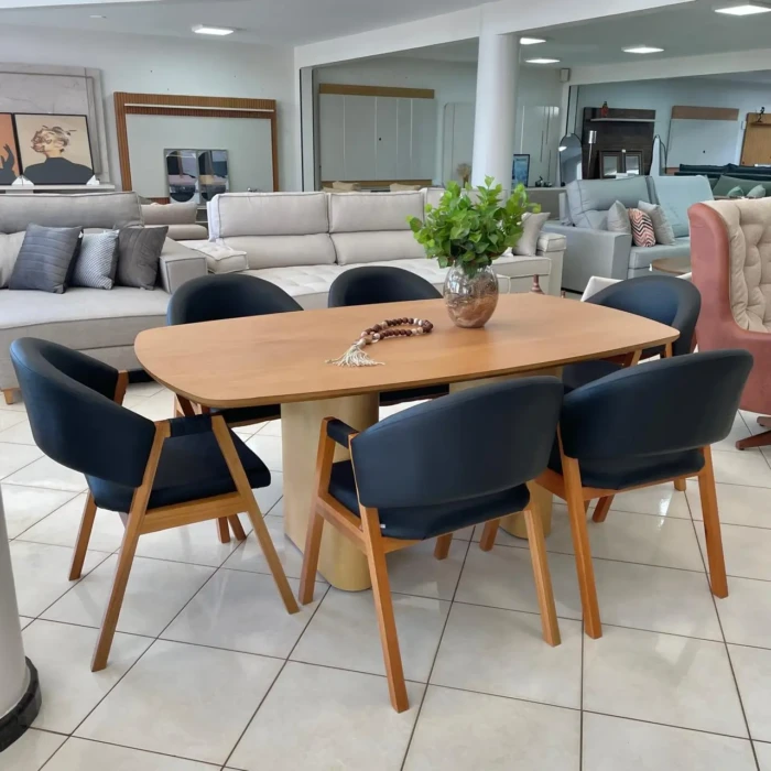 A Mesa traduz sofisticação e equilíbrio em um design contemporâneo de presença marcante, com 06 Cadeiras com lindo design e ótimo conforto.