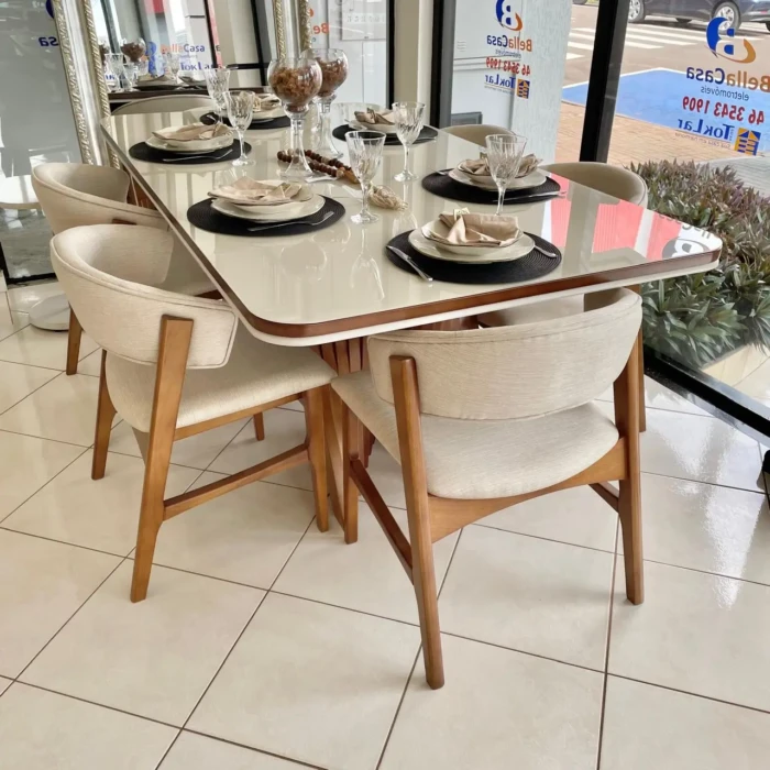 Mesa 2,00m Yara com Vidro (2027) com 06 Cadeiras Dior Nobre (3245)