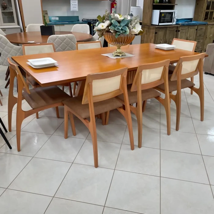 Mesa 2,20m com base Ripada (3779) com 8 Cadeiras Romana em Tela (5051)