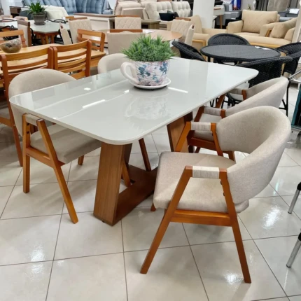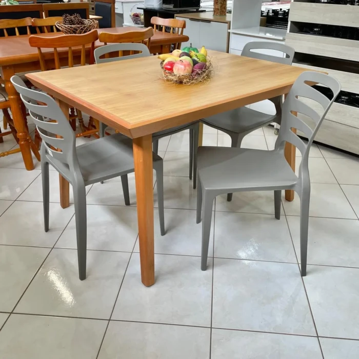 – Com 04 Cadeiras Ville: Ideal para quem busca conforto, resistência e praticidade. Fabricada em polipropileno de alta qualidade, possui design ergonômico com encosto vazado, que proporciona maior ventilação durante o uso.