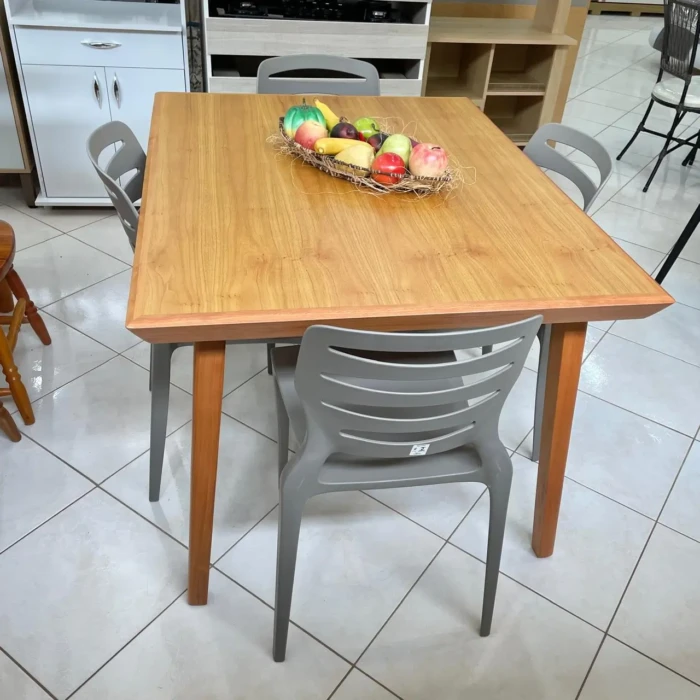 Linda Mesa com Pés em Madeira e tampo Avelã, que fazem uma maravilhosa combinação com 4 Cadeira Ville de ALTA RESISTÊNCIA é pra você que quer fugir da mesmisse.