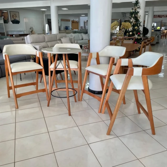 Kit Mesa Bistro com 4 Banquetas Olive em Couro Bege (5582-109)