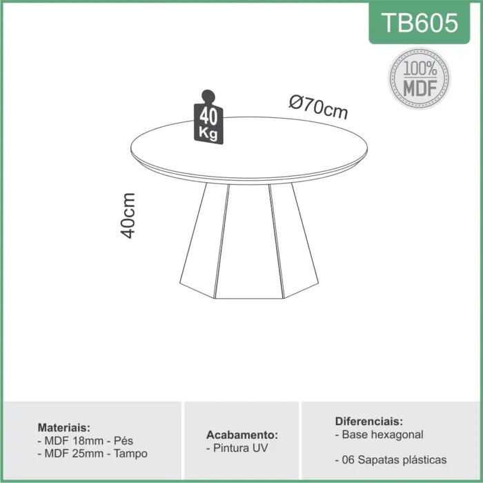 Mesa Centro Redonda 70cm TB605 (1271)