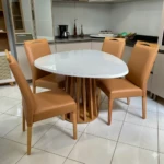 – Com 6 Cadeiras Havana fabricadas 100% em Madeira, tecido linho e encosto em tela preta.