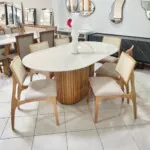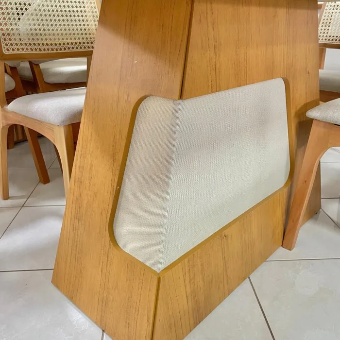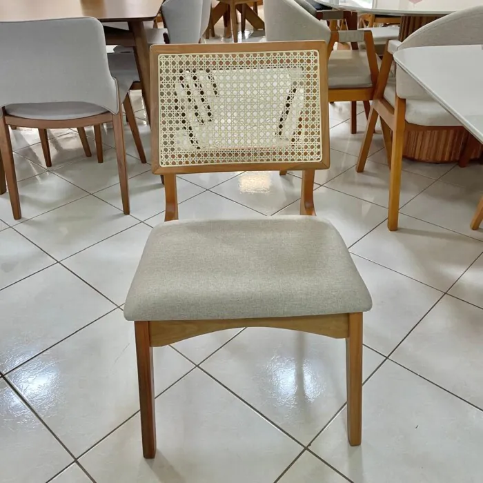 – Com 6 Cadeira em Madeira Romana: Design moderno, com assento estofado revestido de tecido linho e encosto em tela. Fabricada em madeira robusta, com reforço extra na parte inferior do assento, que garanta um visual cheio de requinte sem abrir mão da durabilidade.