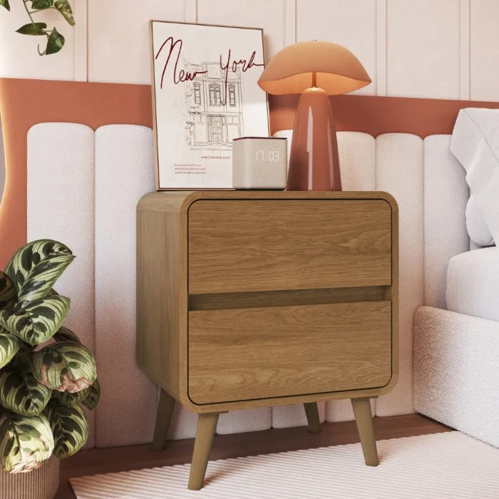 A Mesa de Cabeceira com 2 Gavetas Linha Curve da Completa Móveis é a união perfeita entre beleza e funcionalidade.