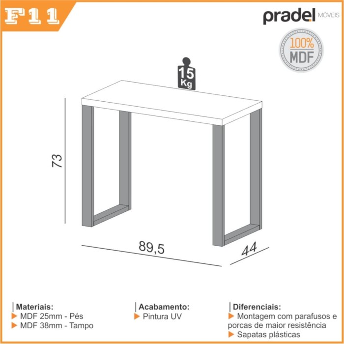 Mesa Escritório 90cm F11 MDF Dalla Costa (3701)