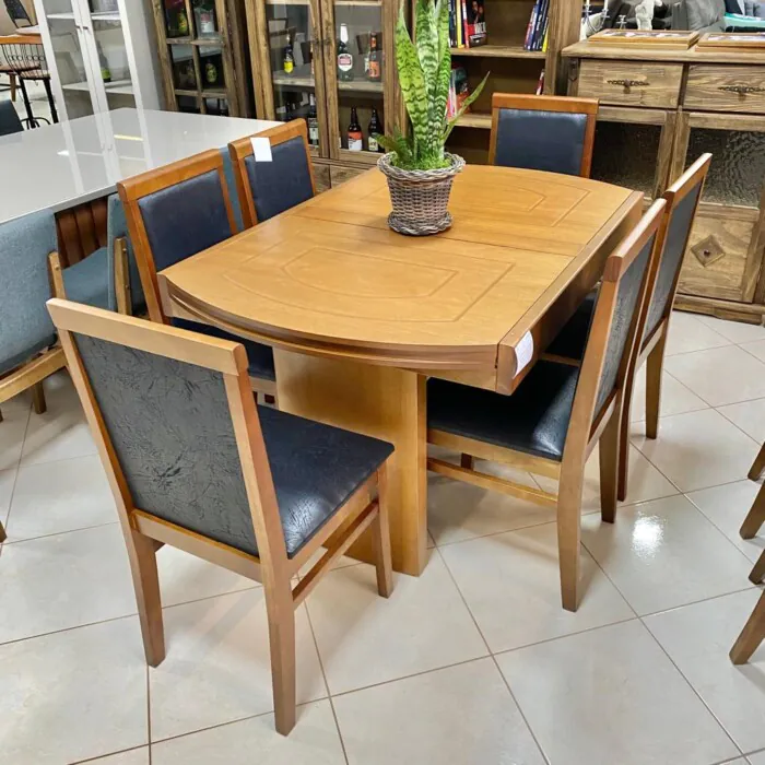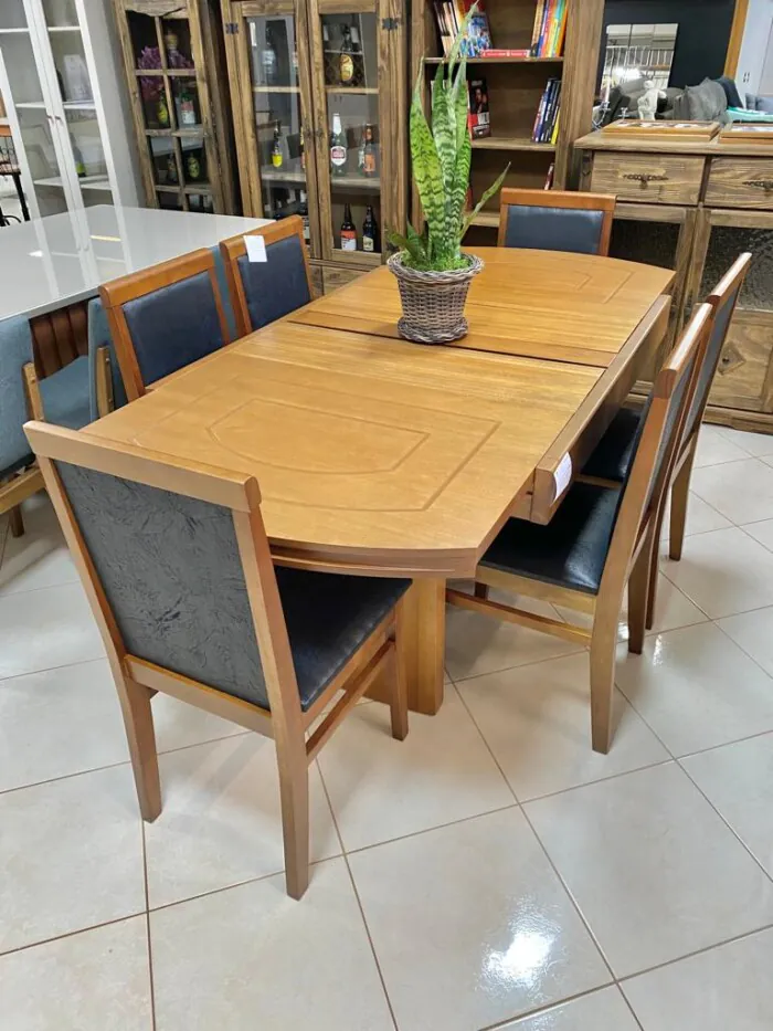 Mesa Extensivel Lorena (5067) com 6 Cadeiras Karol Preto (2690)