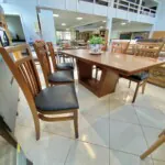 – Com 06 Cadeira Larissa ROBUSTA em Madeira, ergonômica e em Couro Ecológico Preto: Praticidade para limpeza e resistência contra água.