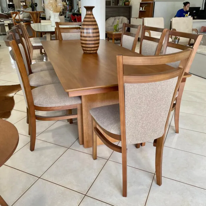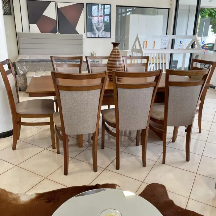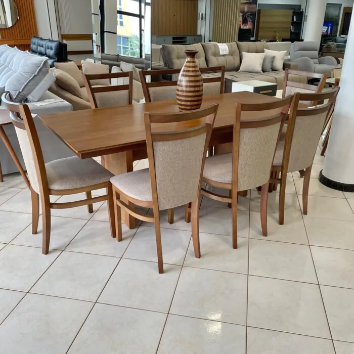 Sala de Jantar Larissa com 08 cadeiras Vitoria Robusta e super confortável, em tecido Linho