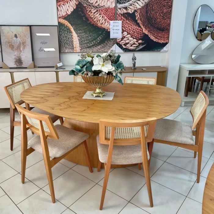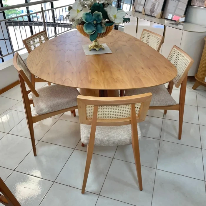 Mesa Organica 1,80m (4215) com 06 Cadeiras Ayla com Tela Natural (2818)