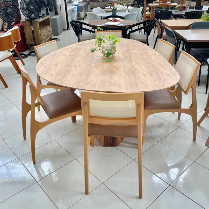 Mesa Organica 1,80m (4215) com 6 Cadeiras Romana em Tela (5051)