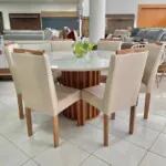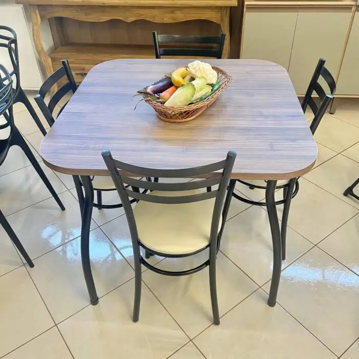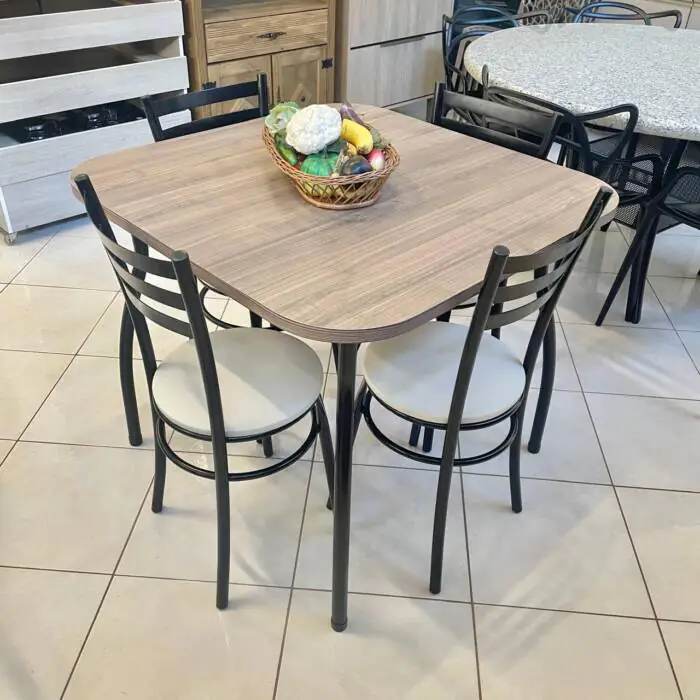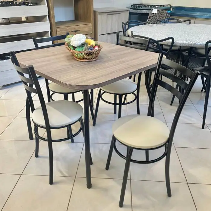 Mesa Quadrada 90cm (3916) com 4 Cadeiras assento bege (2238)