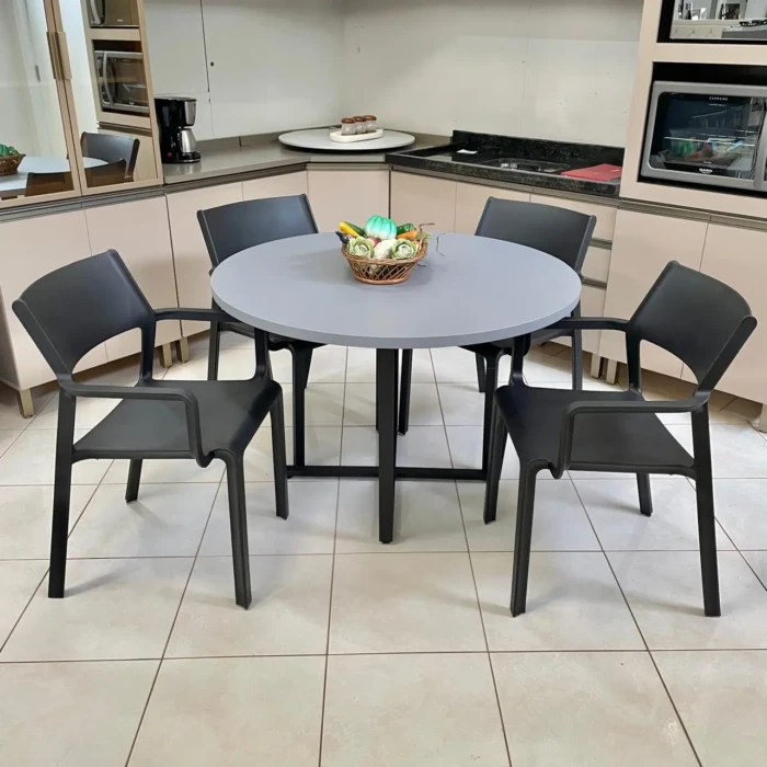 Compacta e Elegante, esse Conjunto de Mesa Redonda com Cadeira Santorini com Braço: moderno e confortável.