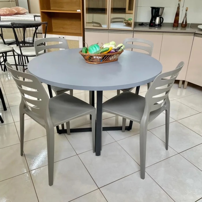 Mesa Redonda 1,10m (5566) com 4 Cadeiras Ville Basalto (6783)