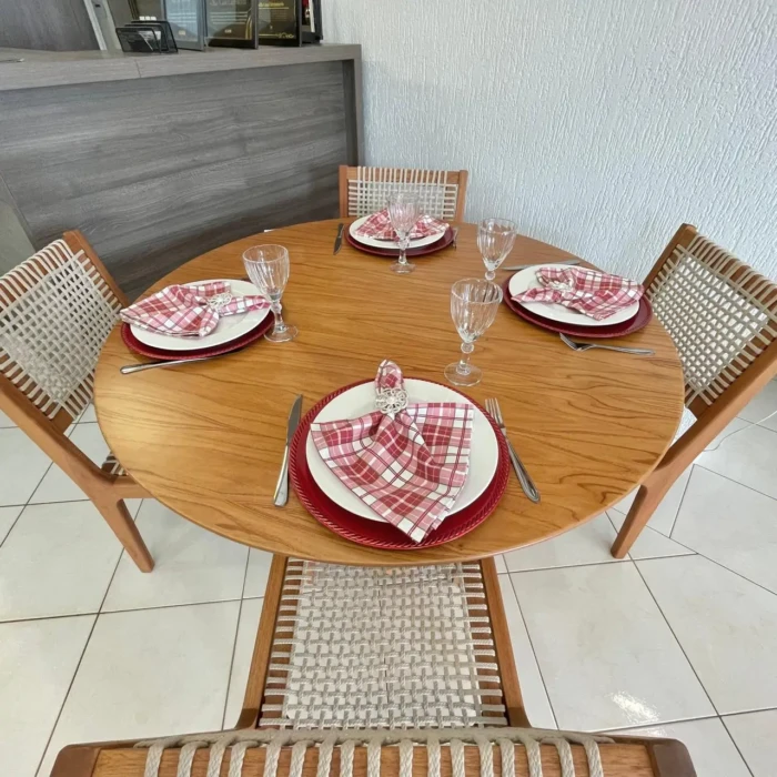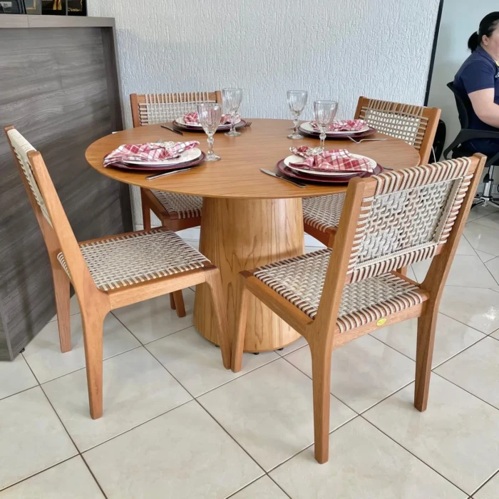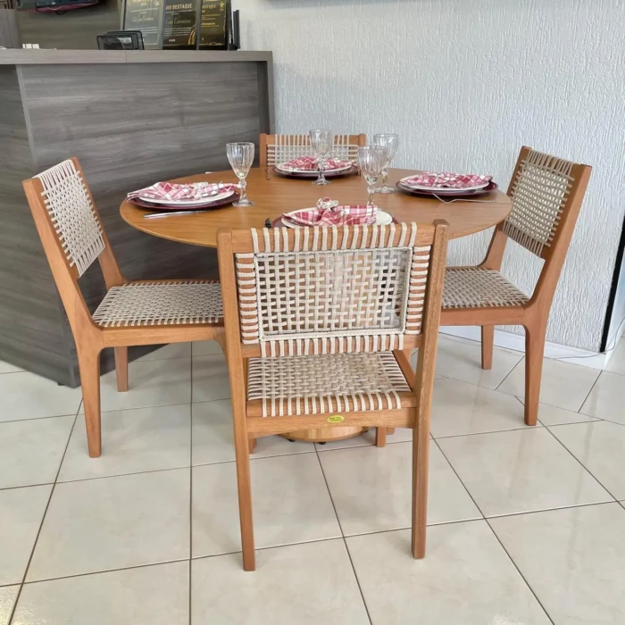Mesa Redonda 1,20m Cinamomo (2371) com 4 Cadeiras com Corda Nautica (5180)