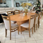 Com 04 Cadeiras Sintra, produzida com madeira de eucalipto reflorestado com acabamento em stain jatobá e corda naútica de 10cm de polipropileno na cor areia