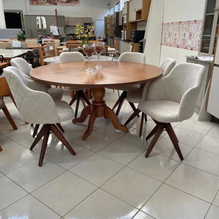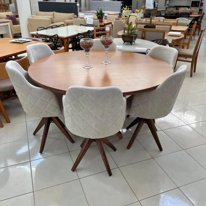 Mesa Redonda 1,60m (1576) com 06 Cadeiras Giratorias Leia (2858)