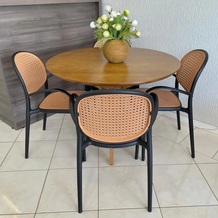 Mesa Redonda 1m (1745) com 4 Cadeiras Portofino Preto (3462)