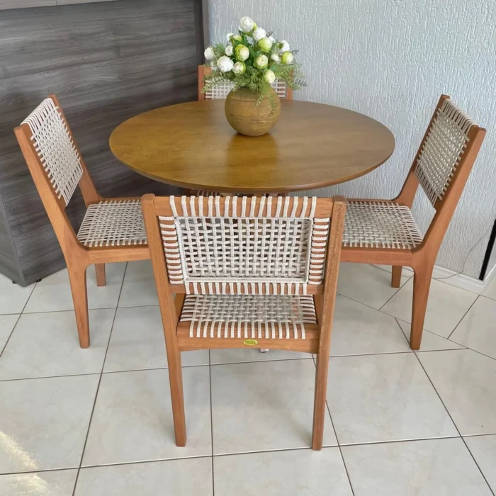Mesa Redonda 1m (1745) com 4 Cadeiras com Corda Nautica (5180)