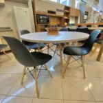 A Mesa viena é a estrela desse jogo, seu design moderno e funcional é ideal para espaços reduzidos, se adaptando a várias composições de ambientes e estilos de decoração. O tampo é chanfrado com formato redondo e vidro colado, o que proporciona maior segurança e segue as tendências de decorações mais atuais, tornando a mesa muito sofisticada.