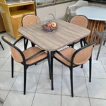 – Com 04 Cadeiras Siena: de pés em Madeira ROBUSTO, estrutura do assento e da cadeira em Polipropileno, almofada do assento com revestimento em tecido sintético (PU) e enchimento em espuma.