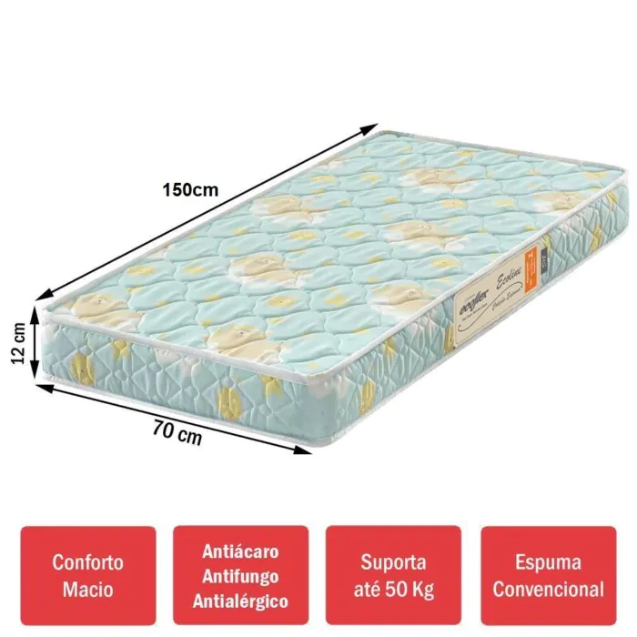 Mini Cama – Colchão D-18 – 70 x 150 x 12cm – Ecoflex (6154)