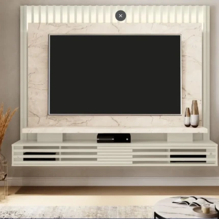 Esse painel vai inovar sua casa, com o painel sobreposto comportando televisores de até 58″, possui fitas de LED ocultas em suas laterais para dar aquele toque especial na hora de assistir um filme em família.