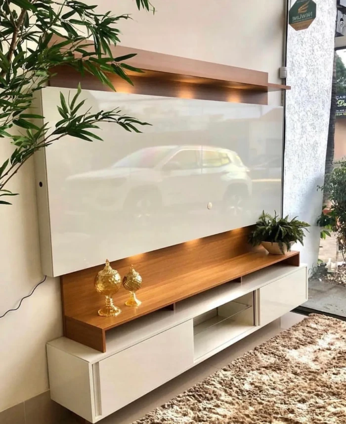 Maravilhosa Estante Home TB112L fabricado 100% em MDF nas cores Freijo com Off White