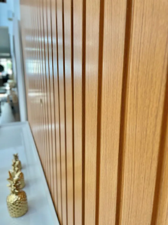 O Painel Ripado Modulado de 2,40m de Altura: Pra preencher a sua parede do rodapé ao teto com muita beleza.