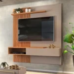 O painel conta com charmosos ripados decorativos por toda a sua extensão, trazendo as mais atuais tendências de design. Para