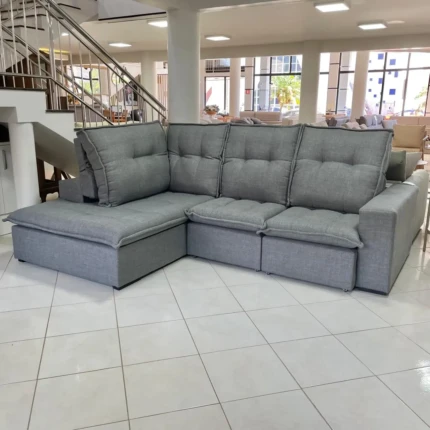 tem a borda frontal chanfrada. Abaixo dela o espaço abriga TV’s de até 70”, garantindo o melhor do entretenimento para sua
