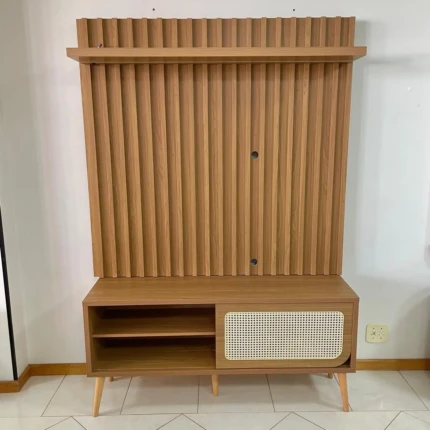 O painel conta com charmosos ripados decorativos por toda a sua extensão, dando um efeito de ripado, trazendo as mais atuais