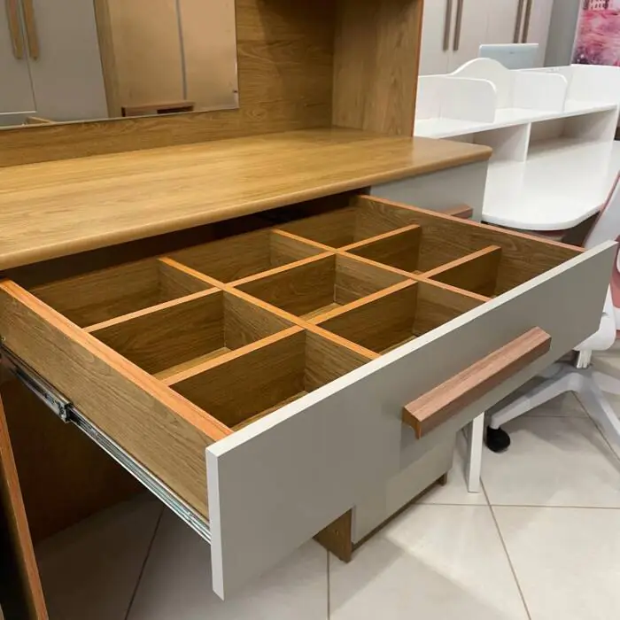 Alem disso, possui uma gaveta com porta objetos, super útil  pra sua organização