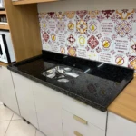 Opção com Furo no granito para torneira ficar embutida na própria pia.