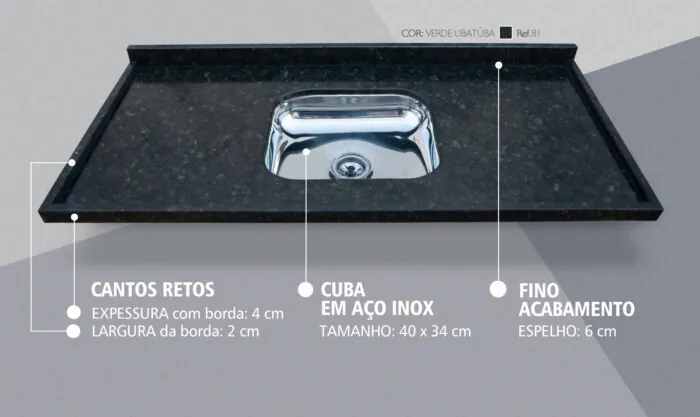 Com borda larga, facilita a lavagem da louça e a durabilidade da sua cozinha, pois a água não escorre da pia.