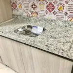 Consulte com um vendedor a Opção com Furo no granito para torneira ficar embutida na própria pia.