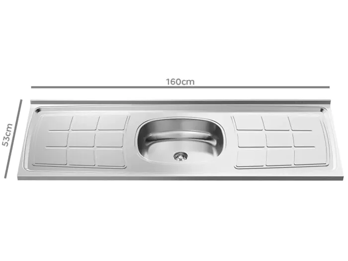 A Pia Plus 30 é toda de aço inox 430, com cuba oval de 11cm de profundidade, revestida com concreto aerado. Possui válvula de 3.1/2 polegada.
