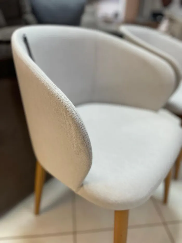 Estrutura em madeira maciça de eucalipto e concha em MDF ergonômico estofada com espuma de boa densidade e revestida com tecido linho nobre.