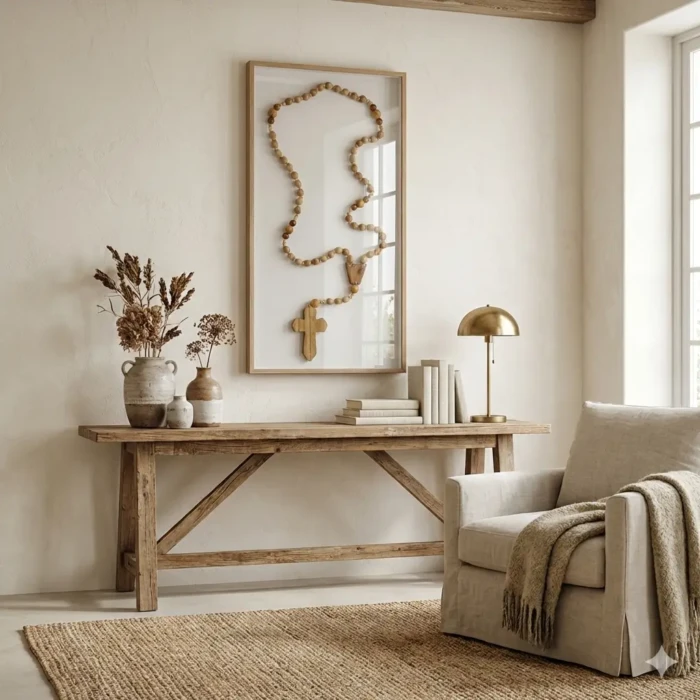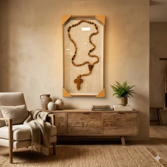 Quadro com Terço Rosario 52cm x 102cm com Vidro (3368)