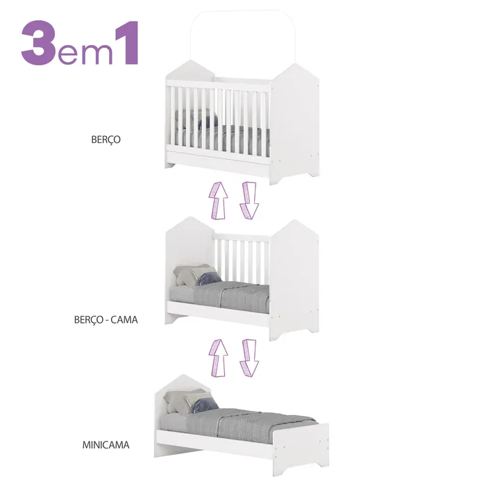 Berço 3 em 1: Berço-Cama e Mini Cama