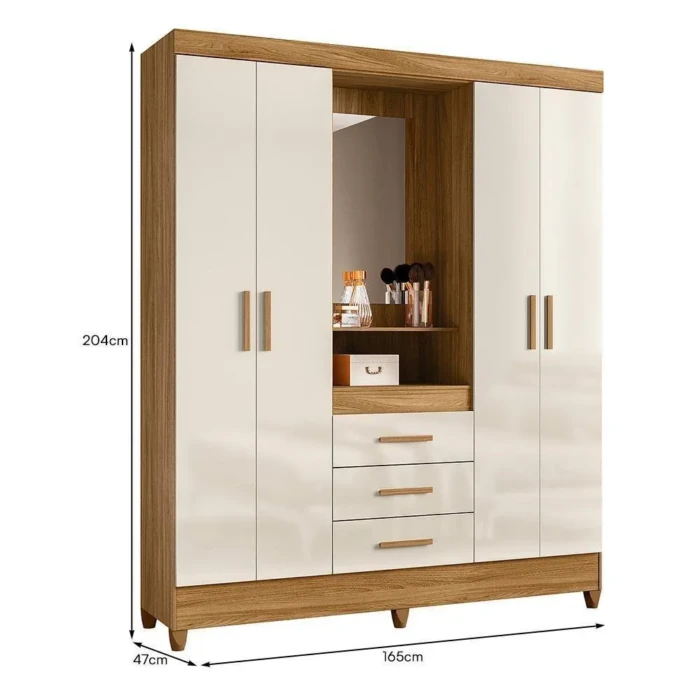 O Tradicional Roupeiro Capelinha, com penteadeira no centro com Espelho: Tudo em um produto só! Ideal pra quartos pequenos, com otima divisão interna.