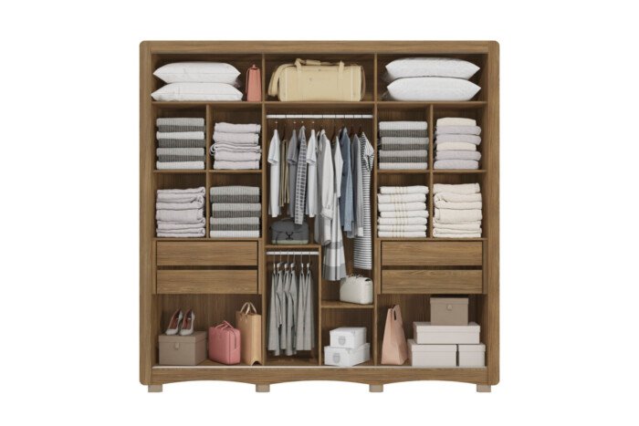 Além disso, as portas deslizantes economizam espaço, já que não exigem espaço adicional para abri-las. Elas deslizam suavemente sobre os trilhos, proporcionando fácil acesso ao interior. Os nichos adicionais são perfeitos para acomodar roupas de cama, caixas organizadoras e outros itens essenciais do dia a dia.