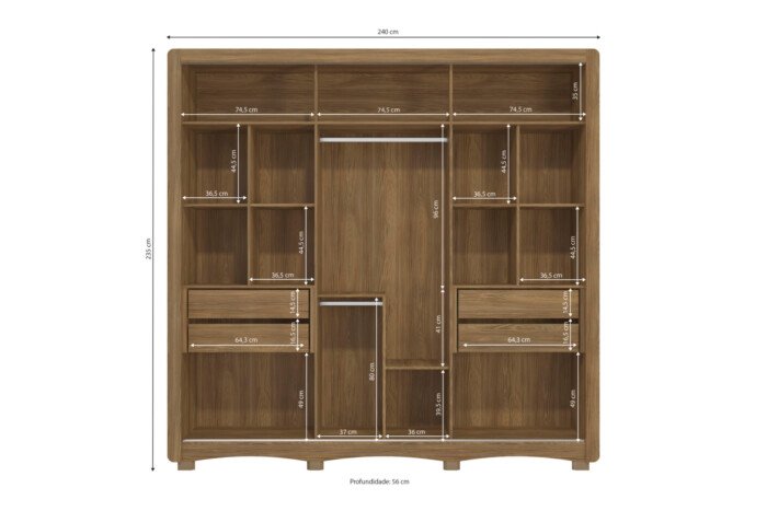 Roupeiro 2,40m 3 Portas Deslizantes N576 (2161)