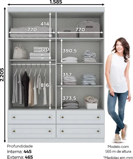 Roupeiro 1,59m Americano 4 Portas MDF (5810)