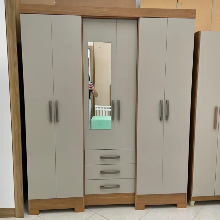 Roupeiro 1,63m 6 Portas B23 Cinza Com Espelho (744)