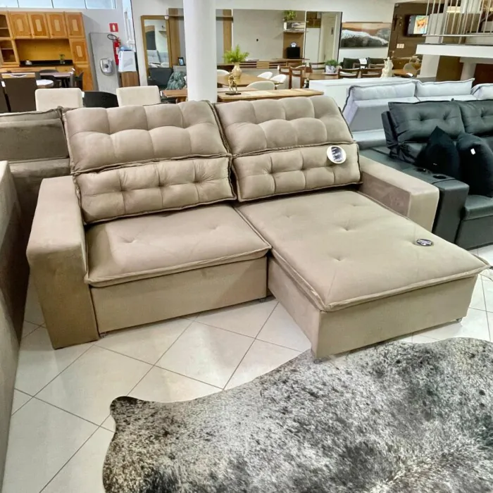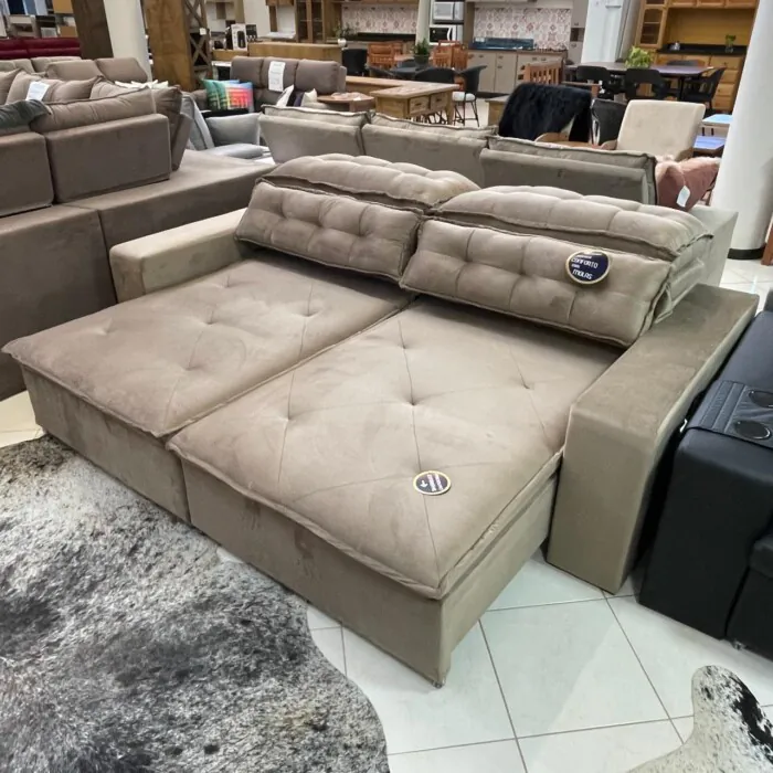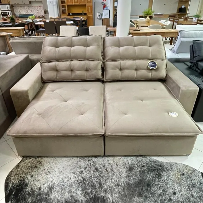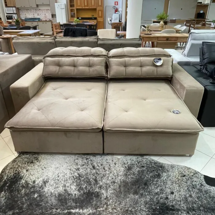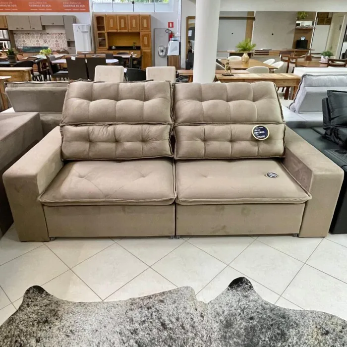 Sofa 2,50m Atualle Tecido Veludo Bege (1044)
