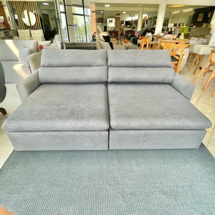Em tecido Cinza, com toque macio e facilidade para limpeza, os braços Slim e arredondados são o contorno perfeito para embelezar a sua sala.