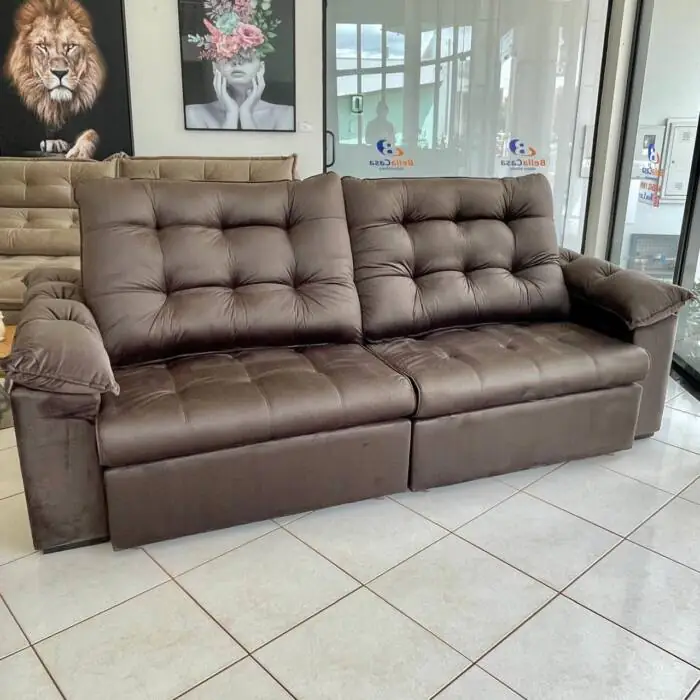 Em Tecido Veludo Italiano Marrom, possui conforto Macio devido as suas Molas Ensacadas Individualmente e braços almofadados
