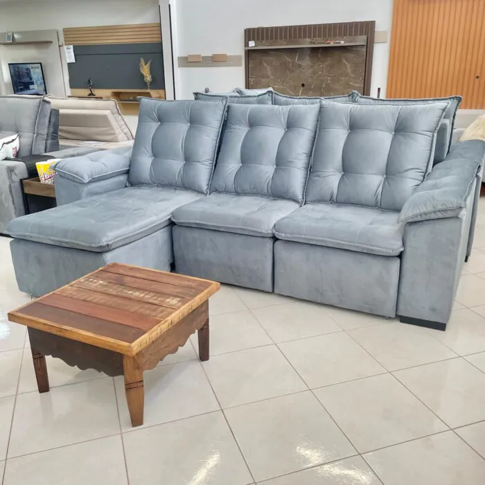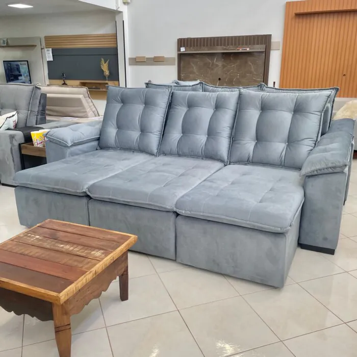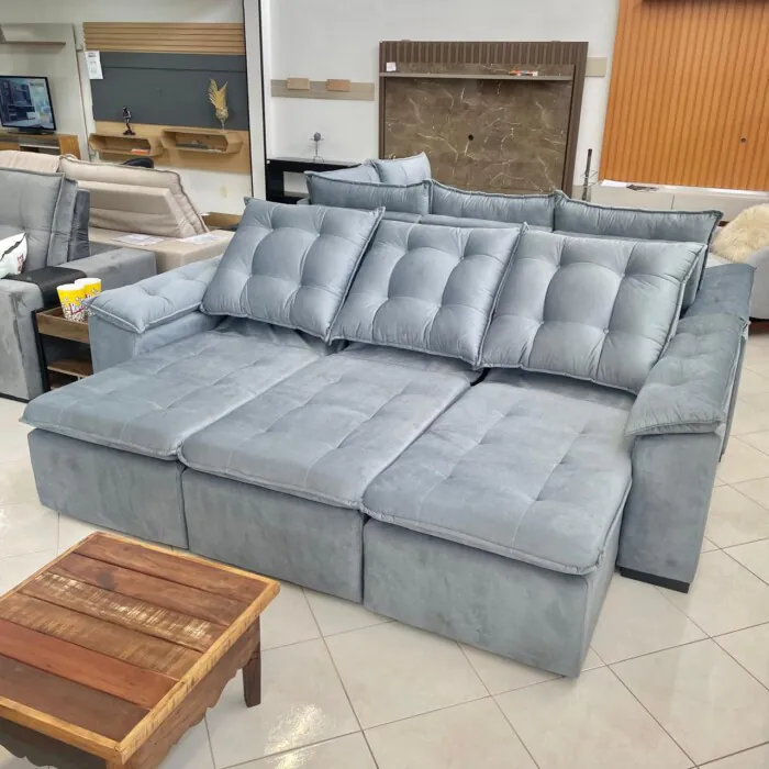 Sofa 2,70m Milão Top 12 – Veludo Soft Cinza (2053)